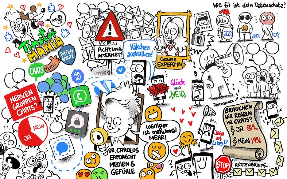 09/28/2018In der Sendung „Timster” vom KiKA hilft Moderator Tim Gailus Medieneinsteigern dabei, sich in der Medienwelt zu orientieren und möchte ihnen so einen bewussten Umgang mit Medien näherbringen. Dr. Astrid Carolus war in der Sendung zu Gast und sprach mit ihm über Chats, Emojis und Likes.