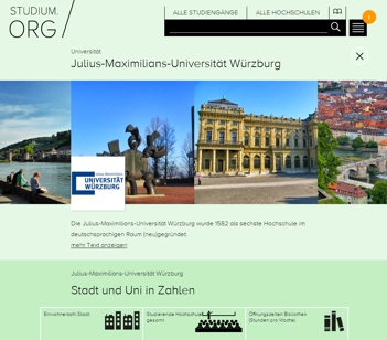 Auch das Institut für Politikwissenschaft und Soziologie ist im neuen Portal vertreten. Sie finden dort Informationen zu Stadt und Universität Würzburg sowie detailierte Informationen zu allen Bachelor- und Lehramts-Studiengängen an unserem Institut. In Kürze werden außerdem die Master- und Promotionsstudiengänge ergänzt.