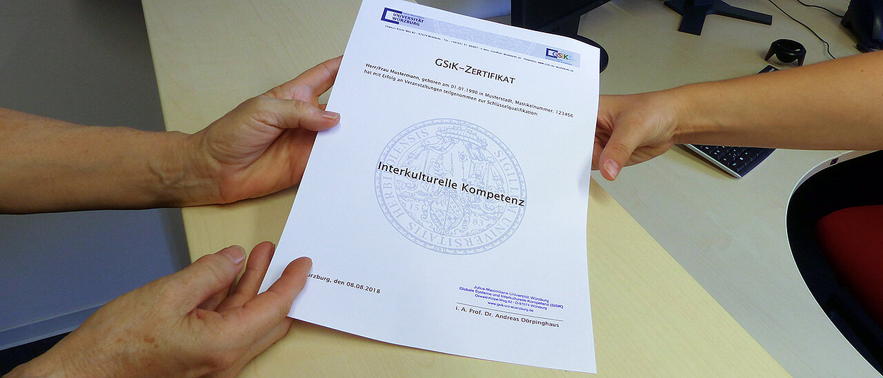 Im Lauf des Studiums besuchte Luisa dann noch so viele andere GSiK-Vorlesungen und Seminare, dass sie sich am Ende das Zertifikat "Interkulturelle Kompetenz" ausstellen lassen konnte. Sie hatte die nötige Mindestmenge an Lehrveranstaltungen absolviert.