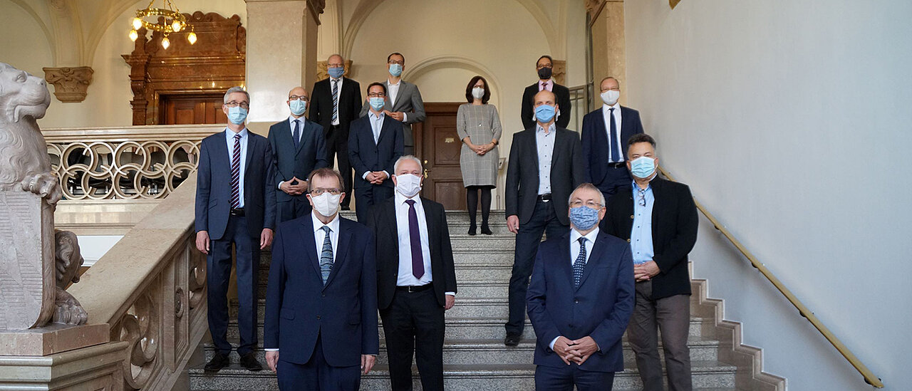 22.12.2020Auf Initiative von Universitätspräsident Alfred Forchel und Lothar Schmitt, Präsident des Oberlandesgerichts Bamberg, wurde das gemeinsame Projekt „Mensch und Justiz im digitalen Zeitalter“ ins Leben gerufen.