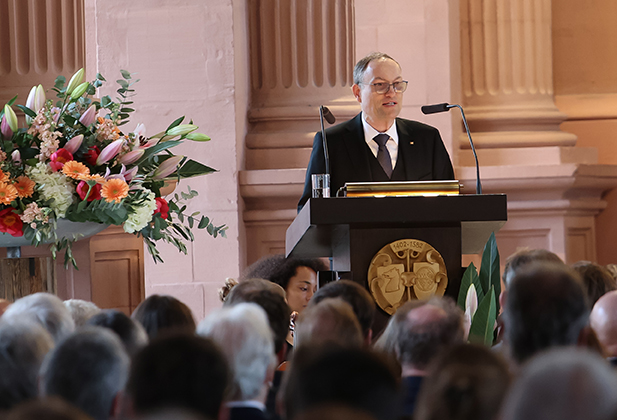 Die Festrede hielt Professor Andreas Paulus von der Georg-August-Universität Göttingen. Er sprach über Wissenschaftsfreiheit in der Hochschule. Andreas Paulus leitet in Göttingen den Lehrstuhl für öffentliches Recht, insbesondere Völkerrecht. Von 2010 bis 2022 war er Richter des Bundesverfassungsgerichts im Ersten Senat und dort als Berichterstatter unter anderem für Kunstfreiheit, geistiges Eigentum und Abgabenrecht zuständig.