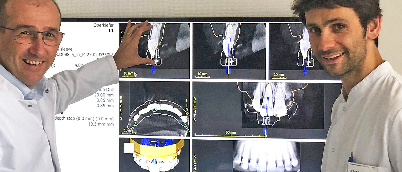 Bei dem Verfahren werden vor der Behandlung eine dreidimensionale Röntgenschichtaufnahme der betroffenen Zahnregion und ein optischer Scan der Zähne erstellt. Die 3D-Daten werden im Computer übereinandergelegt und dienen dann als Grundlage für die virtuelle Planung einer Bohrschablone. Dabei handelt es sich um eine Art Führungsschiene, die den Bohrer punktgenau ans Ziel bringt.