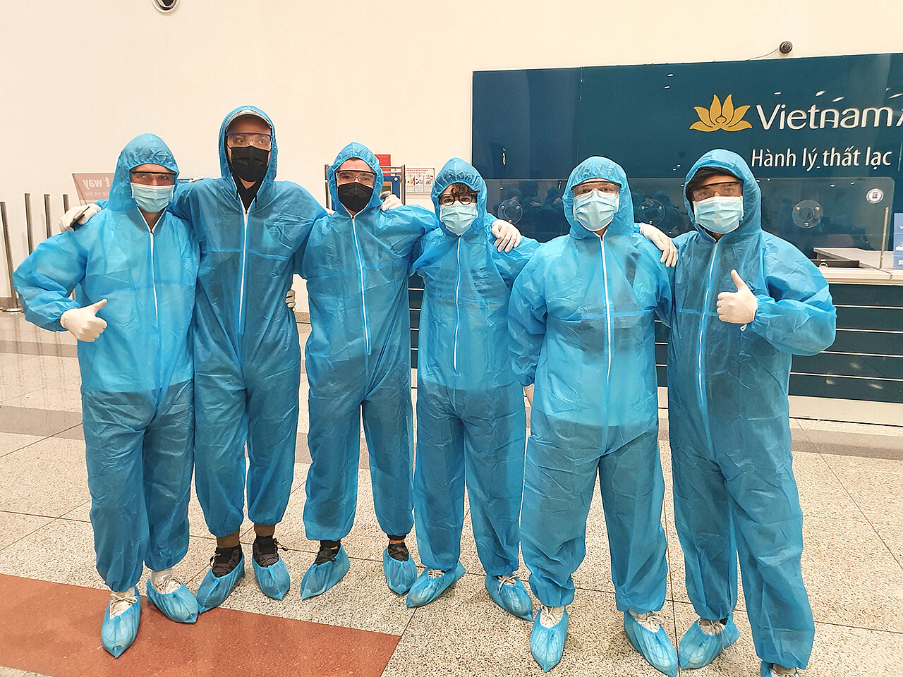 „Am Flughafen bekamen wir erstmal Schutzanzüge und wurden in Spezialtaxis direkt ins Quarantänehotel gebracht“, erinnert sich David. Nach einer Woche in Einzelisolation konnte die Truppe die zweite Quarantänewoche zumindest gemeinsam in einer Übergangswohnung verbringen.