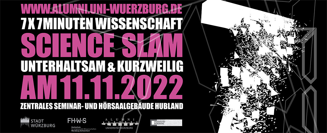 18.10.2022Beim Science Slam des Alumnibüros der Uni Würzburg in Kooperation mit der Stadt Würzburg und der Hochschule Würzburg-Schweinfurt (FHWS) treten auch dieses Jahr wieder sieben völlig unterschiedliche Slammer gegeneinander an.