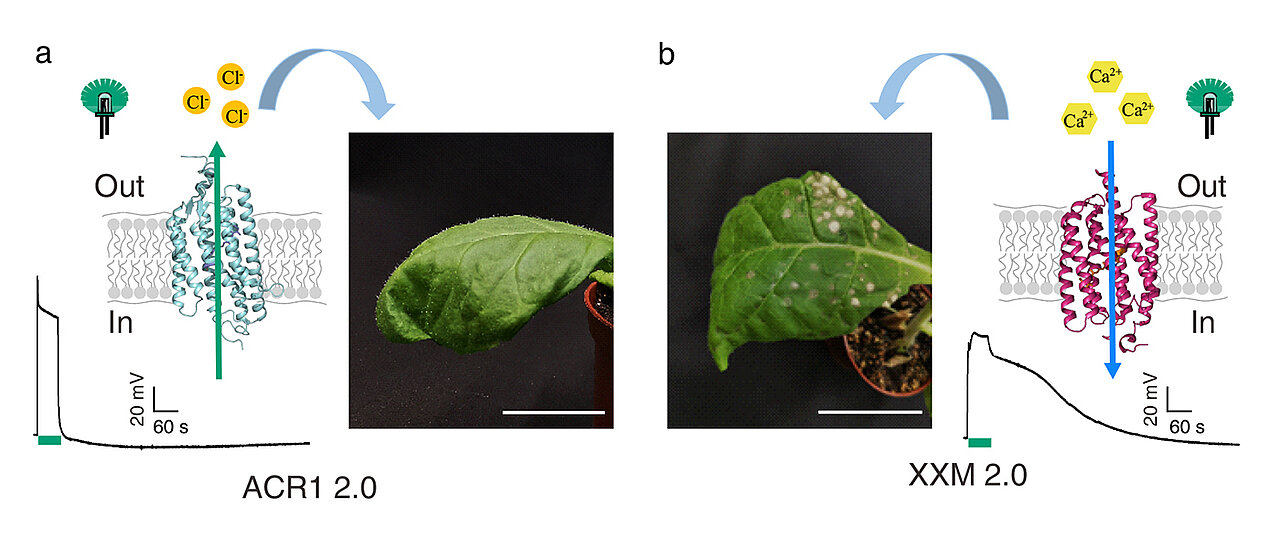 Channelrhodopsine, also Ionenkanäle, die einen intrinsischen Rhodopsin-basierten Lichtschalter tragen, revolutionierten die Neurowissenschaften durch lichtgesteuerte Untersuchungen neuronaler Netzwerke. Channelrhodopsine in der Pflanzenforschung einzusetzen, gelang erst 20 Jahre später, durch eine enge Zusammenarbeit der Gruppe von Georg Nagel, Professor am Physiologischen Institut der JMU, mit Pflanzenforschern der Würzburger Lehrstühle für Botanik 1 und der Botanik 2 sowie des Lehrstuhls für Pharmazeutische Biologie.