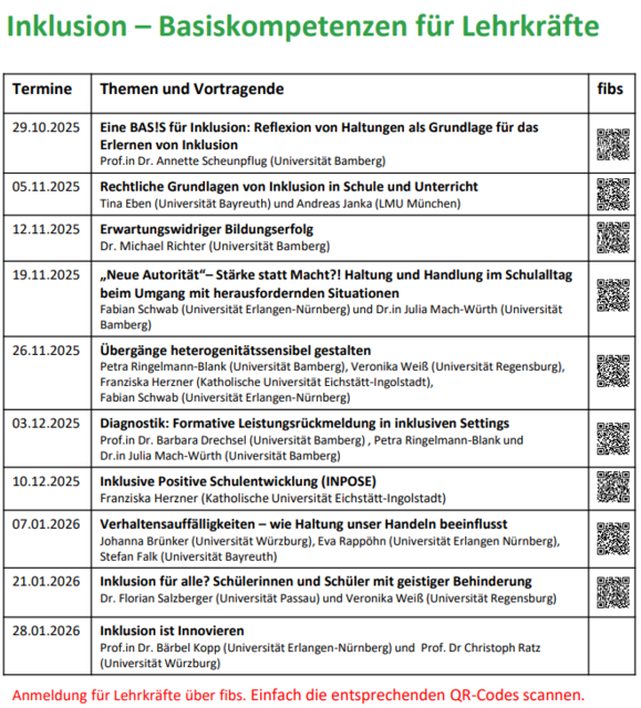 Bitte melden Sie sich über FIBS zu den Veranstaltungen an. Entsprechende QR-Codes finden Sie auf dem Flyer unter Downloads. Eine Fortbildungsbescheinigung wird erteilt.
