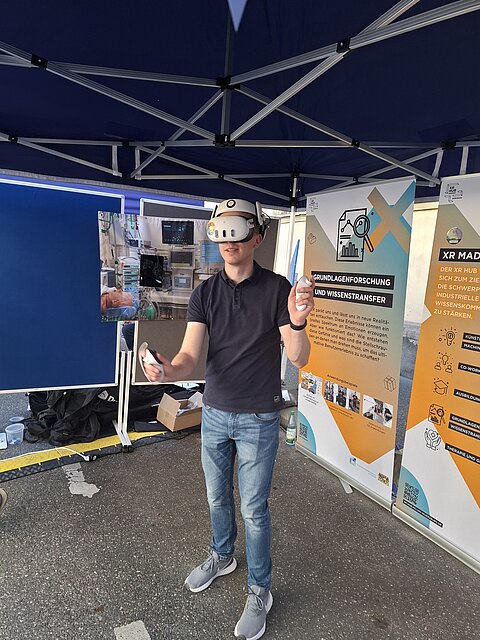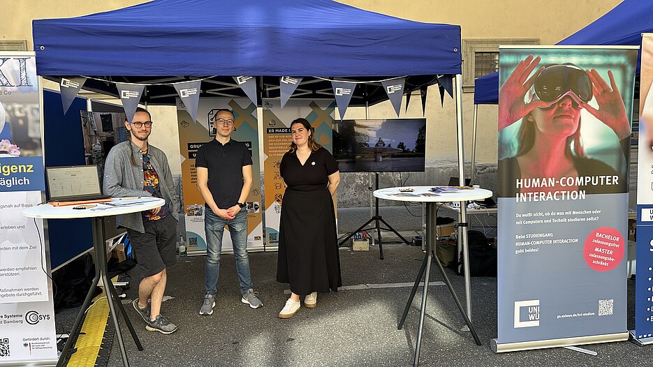The 35th Stadtfest in Würzburg took place on Saturday, the 20th of September. Together with Klaro!KI and the Fachstudienberatung we were able to share our work in the Human-Computer Interaction field and discuss new developments in our research surrounding AI and Extended Reality with interested visitors.