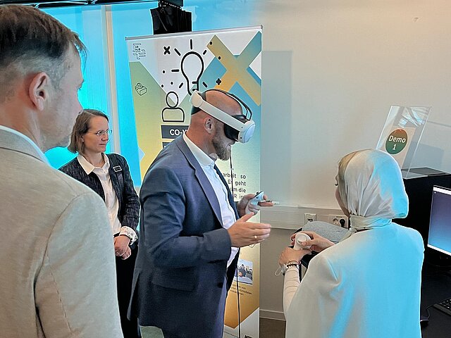 Bavaria’s Digital Minister Dr. Fabian Mehring inaugurated the EXPO with a speech praising students for advancing technology and highlighting the university’s role in innovation. He explored projects like Embodiment of Multiple Avatars in an Avatar Fitting Room, an Acrophobia Therapy in XR, and a Light Show in XR. Dr. Mehring expressed appreciation for the Julius-Maximilians-Universität and emphasized Bavaria’s goal to lead in digital technologies, stating that digitalization improves lives and offers economic opportunities.